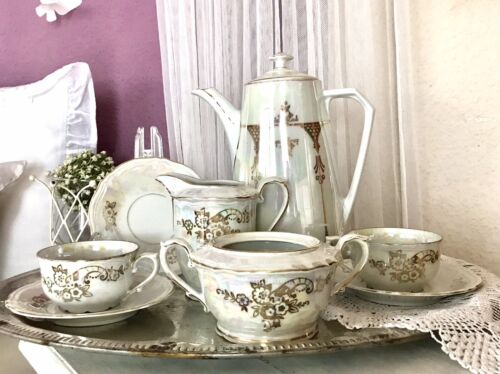 Kahla Porzellan irisierend Golddekor Art Déco Jugendstil Kaffeeservice 4 Pers.