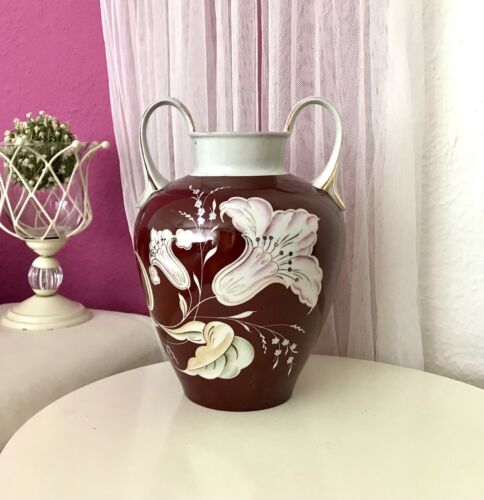 Art Déco Antik Porzellan Groß! Vase Spechtsbrunn So Schön! rot weiß handgemalt