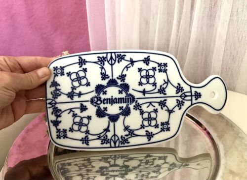 Brettchen Frühstücksbrettchen Porzellan indisch blau Strohblume Name Benjamin