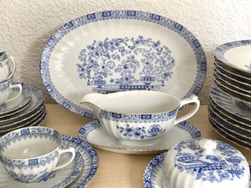 Mitterteich 12 Pers. Porzellan Tafelservice Service Vintage blauer & Platinrand