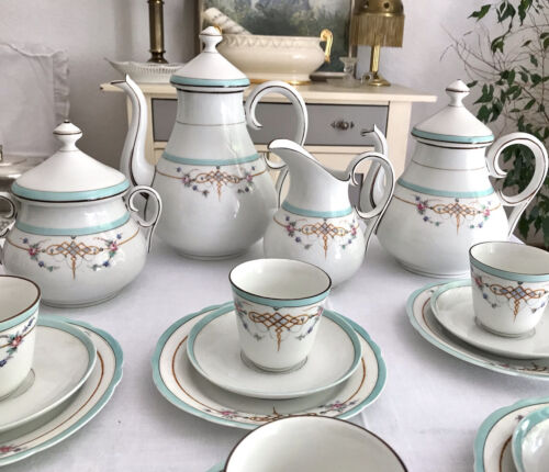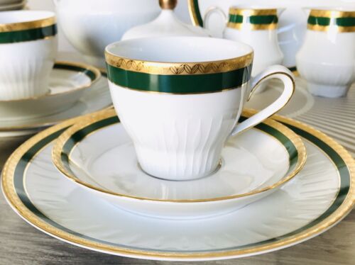 Spät Art Déco Porzellan Kaffeeservice 12 Pers. Porzellan weiß grün gold Scherzer
