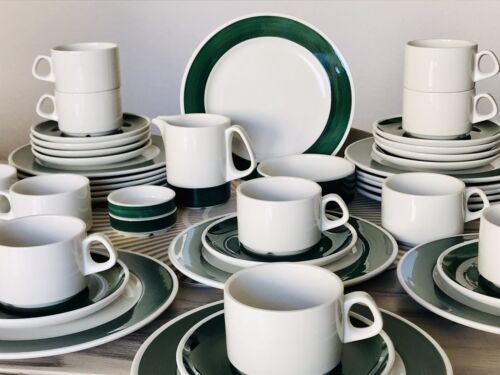 Vintage 70er Porzellan Villeroy&Boch Zürich weiß grün Kaffeeservice Geschirr WOW