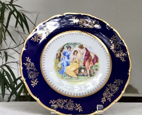 Schöne Porzellan Prunkschale Schale Zierteller Prunkteller Kobalt Golddekor