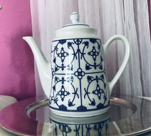 Porzellan Kaffeekanne Kanne indisch blau Strohblume Fena