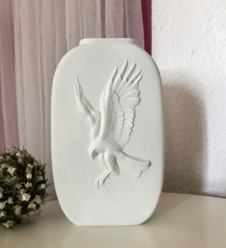 Vintage 60er Bisquit Porzellan Vase Hutschenreuther Tirschenreuth Greifvogel