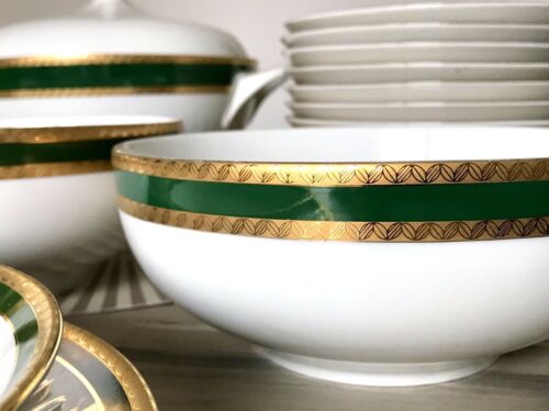 Spät Art Déco Porzellan Tafelservice 12 Pers. Porzellan weiß grün gold Scherzer