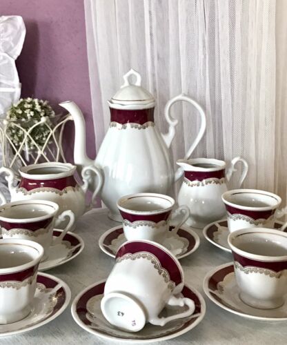 Porzellan Kaffeeservice Mokka 6 Personen FP Zajecar Edel weiß burgund gold