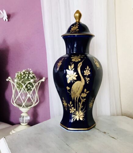 Porzellan Kobalt Blau Gold groß Deckelvase Vase Urne Bareuther Waldsassen