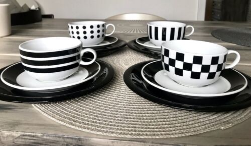 Vintage 90er Porzellan Eduscho weiß schwarz Kaffeeservice Kaffee Geschirr