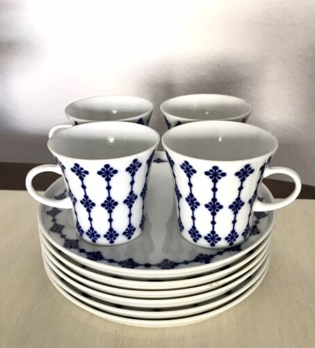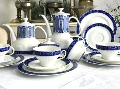 Vintage Porzellan Kaffeeservice 4 Personen Weiß Blau Melitta 4 Tassen 6 Teller
