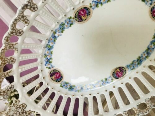 Wow Antik Art Déco Porzellan Durchbrucharbeit oval Schale Servierschale Schumann