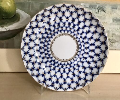 Vintage Lomonosov Porzellan 2x Untersetzer Untertasse weiß blau gold Kobalt-Netz
