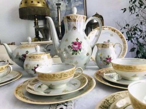 Vintage alt Porzellan Kaffeeservice 5 Personen Edel Oscar Schlegelmilch Rose