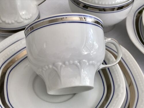 Vintage Porzellan 12 Pers. Kaffee- Teeservice Mitterteich blauer & Platinrand