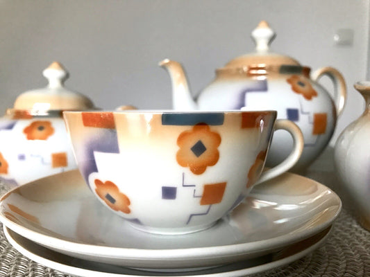 Antik Art Déco Porzellan Kaffeeservice Spritzdekor Moccaservice