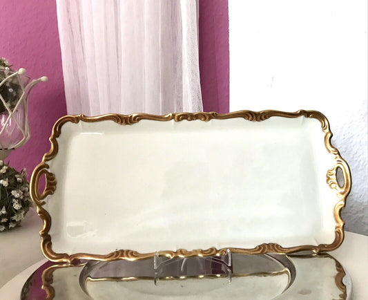 Porzellan längliche Kuchenplatte Edelstein Maria Theresia elfenbein gold