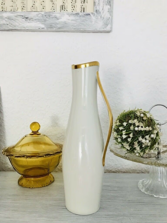 Antik Art Déco Porzellan Vase Henkel Blumenvase Elfenbein Goldrand Eschenbach