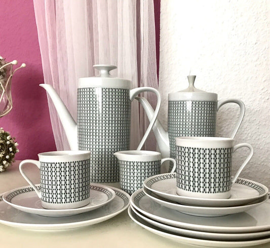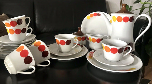 Alt Vintage 70er Seltmann Porzellan Kaffeeservice weiß bunte Kreise 6 Personen