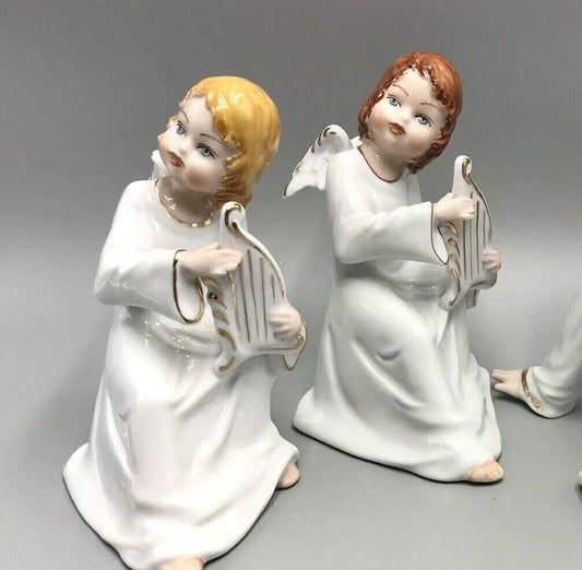 Weihnachten 2 ältere schöne 19 cm große Engel mit Harfe Porzellan Figuren