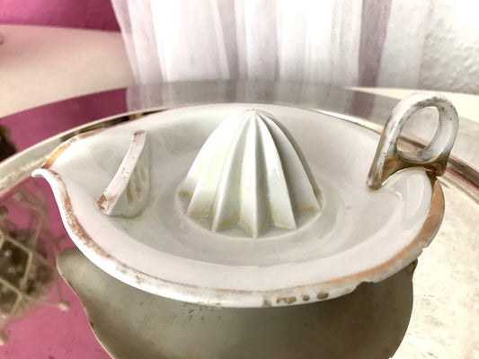Antik Jugendstil Art Déco Porzellan Zitronenpresse weiß Goldrand