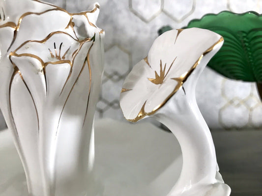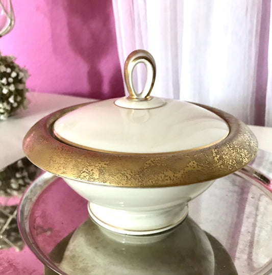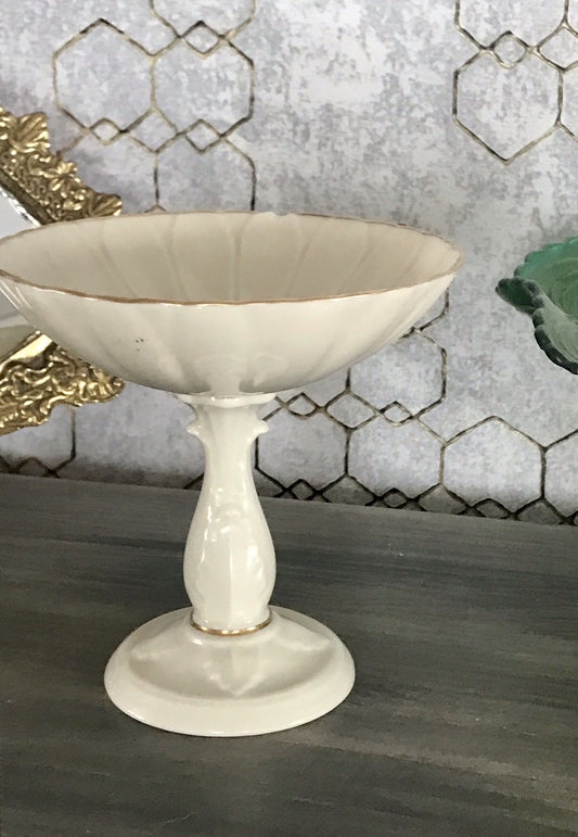 Antik Porzellan Fußschale Schale auf Fuß USA Lenox elfenbein gold Blume