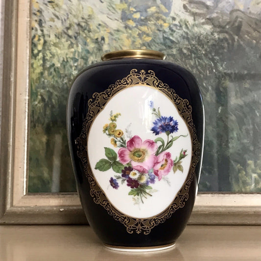 Vintage Alt 1 Porzellan Prunkvase Vase Echt Kobalt blau bunt Weimarer Porzellan