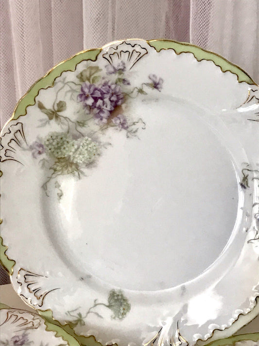 Antik 4 Dessert Kuchen Teller Jugendstil Blumen Muster Jäger&Co Kuchenteller