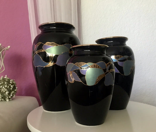 Vintage 3x Porzellan Prunkvasen Vasen Golddekor Italien Postmodern