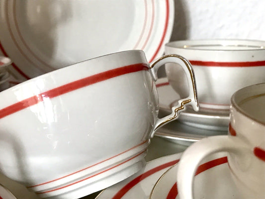 Antik Art Déco Porzellan Kaffeeservice weiß rot orange gemarkt deutsch Bauhaus