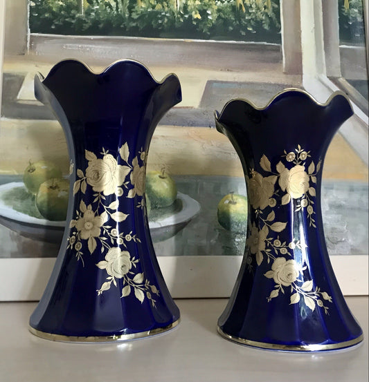 Vintage 2x kleine Porzellan Prunkvasen Deckelvasen Dosen Vasen MCM kobaltblau