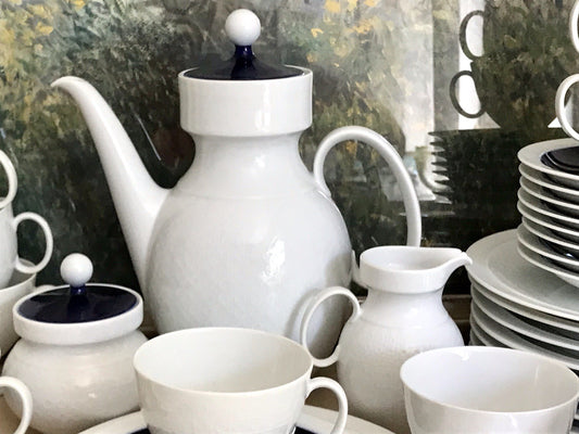 Ak Kaiser Porzellan Kaffeeservice 12 Personen Design weiß kobaltblau mit Relief