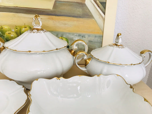 Antik Art Déco Porzellan Tafelservice Carstens Sorau weiß goldene Ranke EDEL