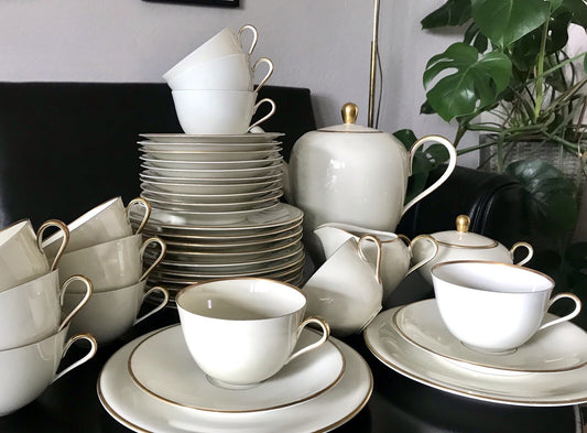 Vintage Art Déco elfenbein Porzellan Kaffeeservice Service 12 Pers. Edelstein