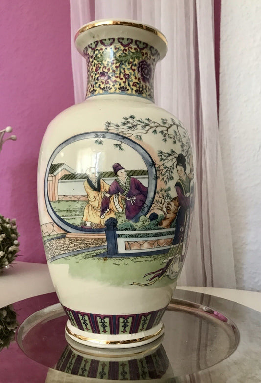 Alt Vintage Vase Bodenvase Japanisch mit Geishas Chinoiserie Design