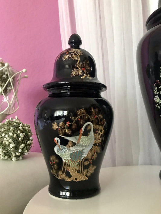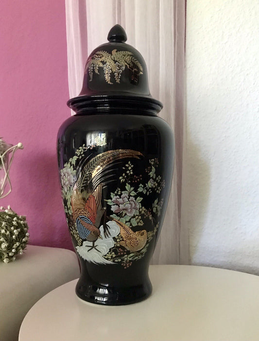 Vintage GROß 1 Porzellan Prunkvase Deckelvase Vase Italien MCM schwarz bunt
