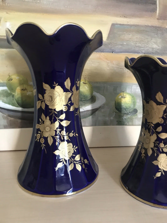 Vintage Alt 1 Porzellan Prunkvase Vase Echt Kobalt Golddekor