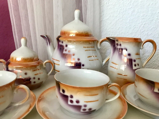 Antik Art Déco Porzellan Kaffeeservice Spritzdekor Teeservice 6 Pers.