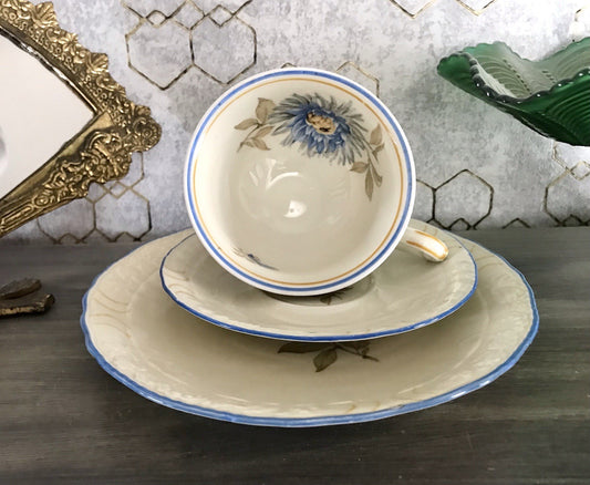 Antik Art Déco Porzellan 1 Kaffee-Gedeck Sammeltasse Distel? Motiv elfenbein