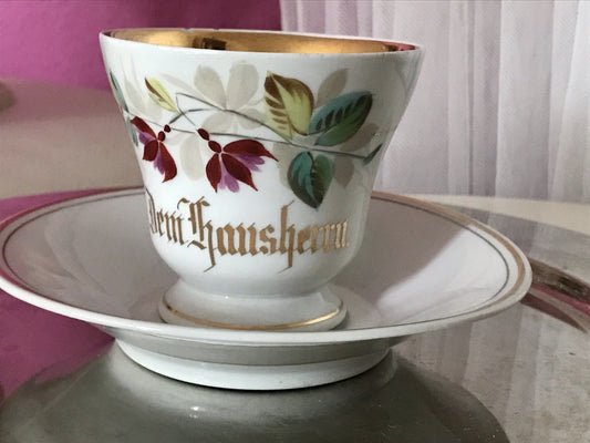 Antik Porzellan Andenken Becher Gedeck Sammeltasse Tasse „Dem Hausherrn“