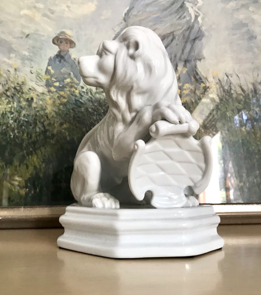 Antike Replik Porzellan Figur Löwe weiß auf Sockel Neundorf