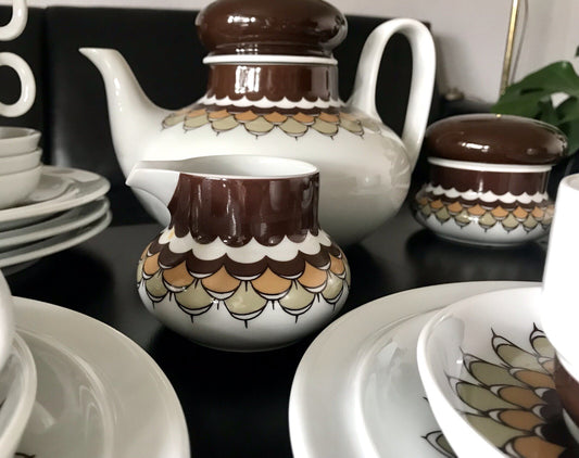 Alt Vintage 70er Thomas Porzellan Kaffeeservice weiß braun orange Wirkalla 6 P.