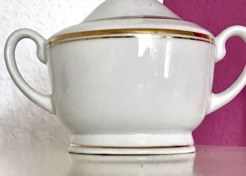 Antik Art Déco Porzellan Zuckerdose weiß Goldrand Mitterteich