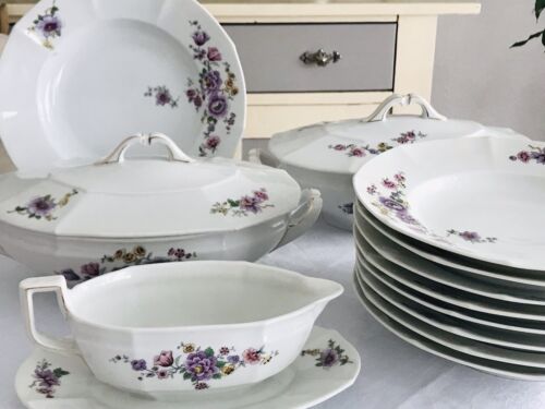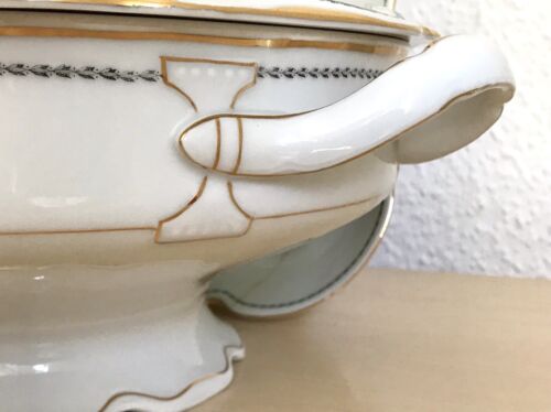 Antik Art Déco Porzellan Tafelservice weiß bunt Eamag Teller Terrinen Sauciere