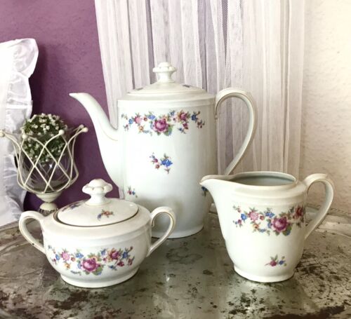 Antik Jugendstil Porzellan Kaffee Kernstück Kanne Sahnegießer & Zuckerdose