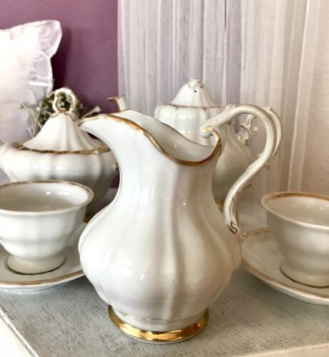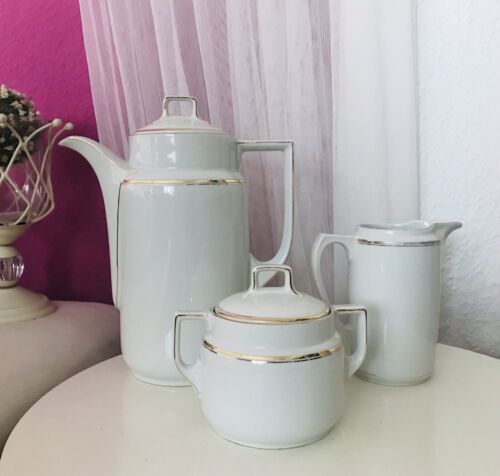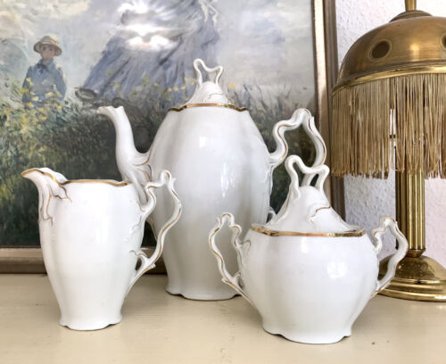 Antik Art Déco Porzellan Kernstück Kaffee Service Edel Weiß Goldrand