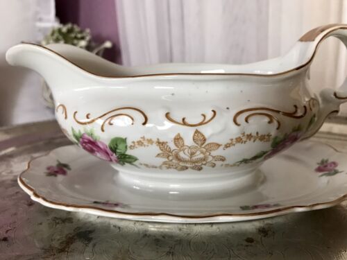 Antik Art Déco Porzellan Sauciere von Schumann Rosenmuster SCHÖN!