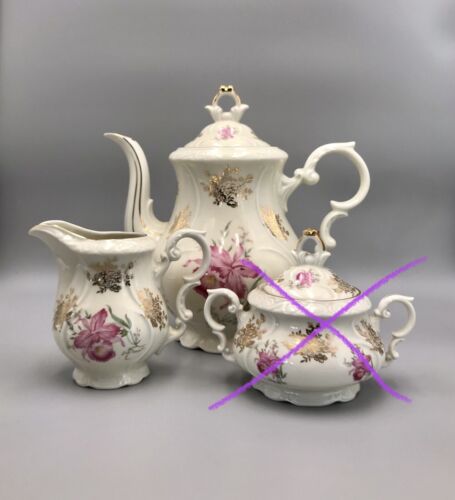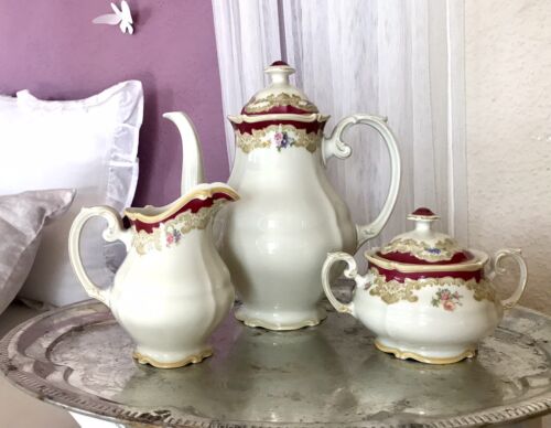 Antik Gebr. Pohl Porzellan Kaffeeservice Zuckerdose Kanne Sahnegießer weiß gold