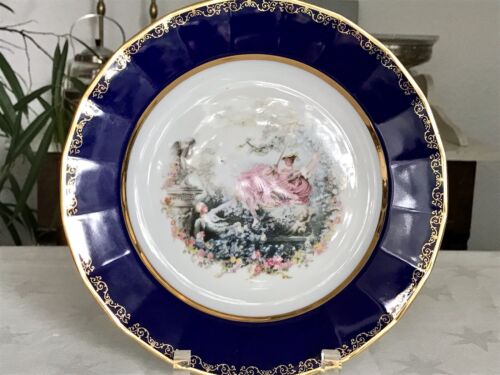 Antik Art Déco Porzellan Prunkschale Schale Zierteller Kobalt Golddekor Epiag