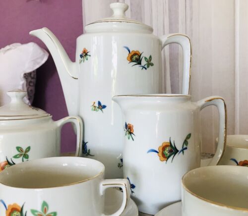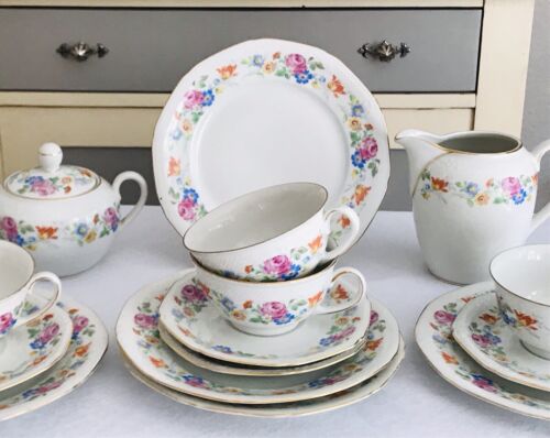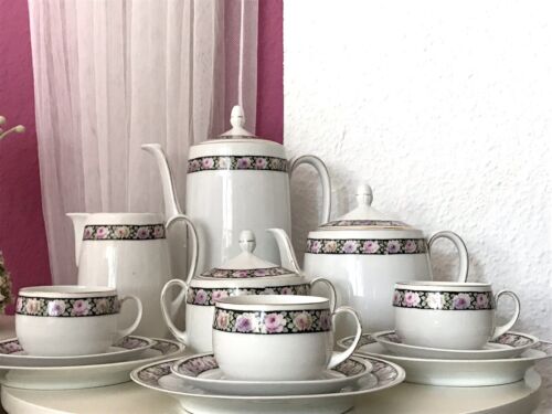 Antik Art Déco Porzellan Kaffeeservice Oscar Schaller Bavaria Blumenmuster
