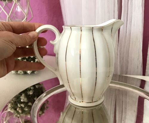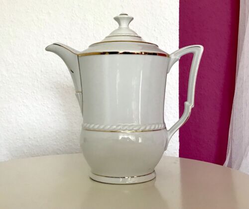 Antik Art Déco Porzellan Kaffeekanne weiß gold Kaffee Kanne SCHÖN!